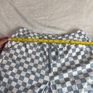 Vans Range print relaxed checkerboard pants in blue and white. 98% cotton. Two front and two back pockets. Unisex. Size XS. 27” inseam. Elastic waist. See pics for other measurements. Gently used condition. Sold out online.