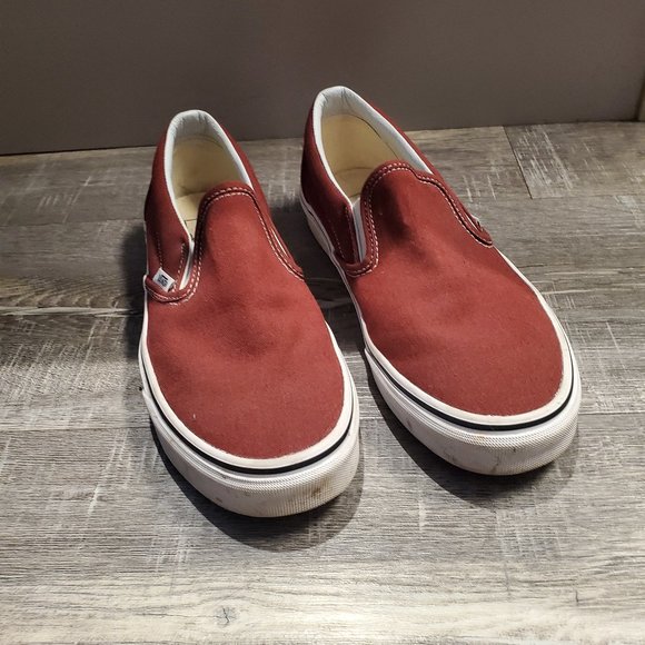 Classic Vans slip-on sneakers. Bold red canvas. Comfortable and stylish.