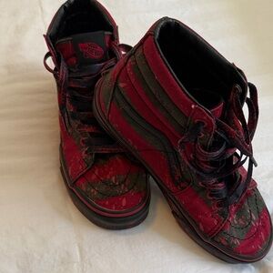 Bold Vans high-tops in striking red and black. Perfect for a standout look. Comfortable and stylish. Freddy Krueger Collection women’s 5 boy 3.5