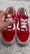 Classic Vans sneakers. Bold red with white accents. Iconic style.