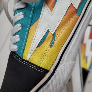 Iconic Vans Revenge X Stormy low top sneakers! Eye catching lightning bolt side but with a sturdy and cushy footbed in typical Vans style. Shoes have some wear from age which includes: Some stains and marks to canvas and interior, and the inner spot where the heel hits has some peeling on the faux leather. Size mens 8