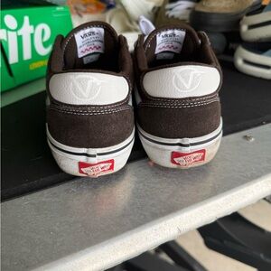 Classic Vans sneakers in dark brown with white accents. Stylish and comfortable for everyday wear.