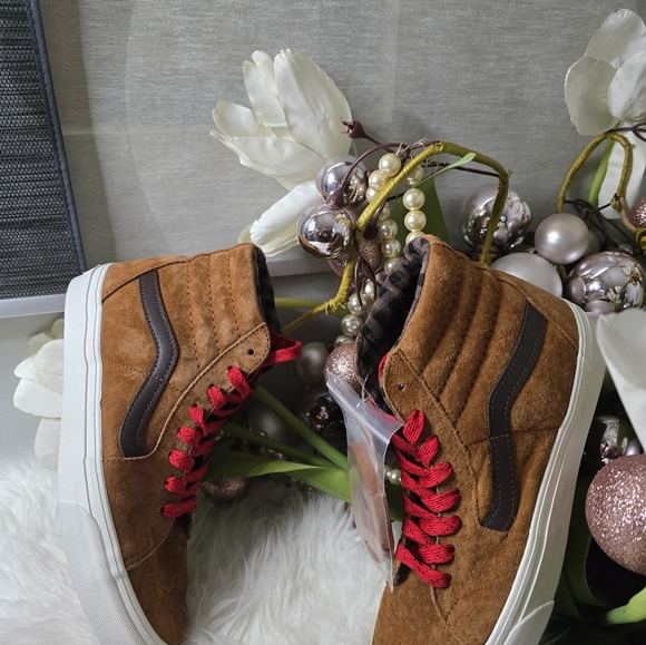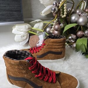 Vans SK8 Glazed Ginger Brown Pig Suede Plaid Hi Top Sneakers-Asst Women 8.5