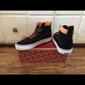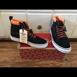 Vans - SK8 HI - black leather MTE with orange accent/ laces x. NWT boys 5.5