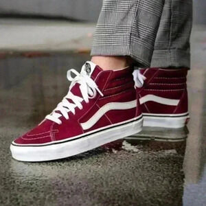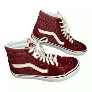 Vans SK8 Hi Wine and White, skate board shoe/suede/ Men 5.5/ Women 7