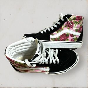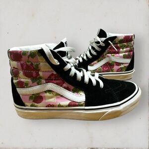 Vans SK8 Hi-Tops Shoes Y2K Womens Suede Black Floral 8.5 Rose Skater Retro
