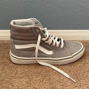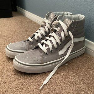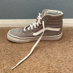 These are SK8-HI grey vans! These are unisex sneakers, size 9 for women's and size 7.5 for men's. These are used shoes, but are still in really good condition. They just sit in my closet and I never wear them, hoping to give them to someone who would appreciate them and rock them!