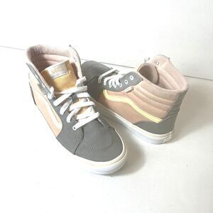 Vans SK8-Hi Sneaker Skate Casual Pink/Gray Shoes Women's Size 6-6.5 Platform Canvas Missy Size 5