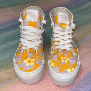 Vans SK8-Hi Tapered Stackform Shoes In Checkerboard Floral Orange size 5
