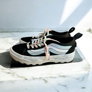 Vans Old Skool Pride sneakers with multicolor stripe detailing and “love” laces in multiple languages. Unisex design, bold and fun. Gently worn and in great condition.