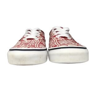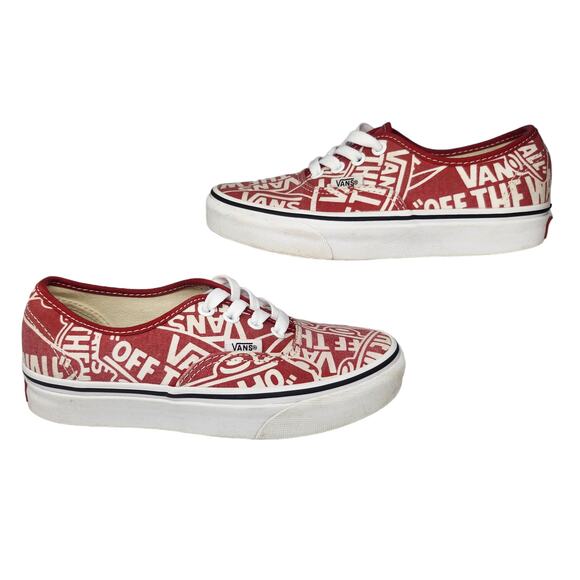 Vans Shoes Womens 5 Red White Low Tops Skater Preppy Comfy Spell Out Abstract
