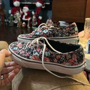 Vans Shoes Womens 7 Mens 5.5 Multi Floral Black Dark Flowers Lace Up Low Top