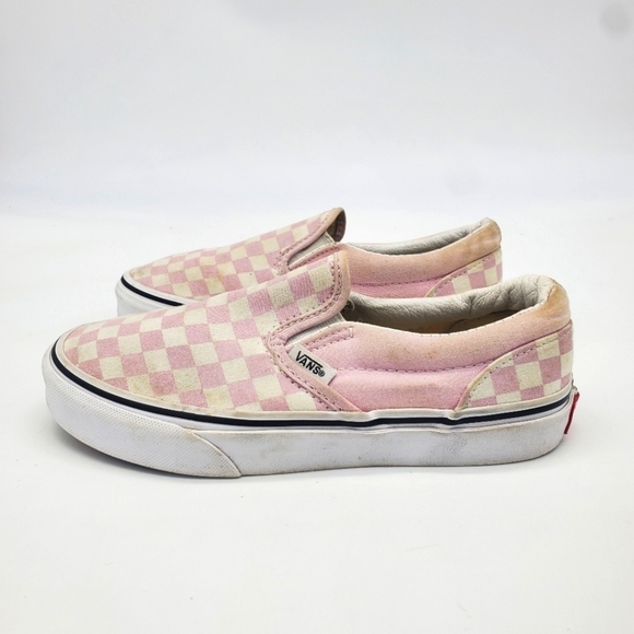 Vans Shoes Youth 3 Girl Classic Off The Wall Slip On White Pink Checkerboard