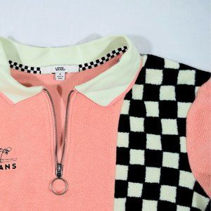 Vans Short Sleeve Terry Cloth Peach + Black & White Checkered Shirt: Size Small