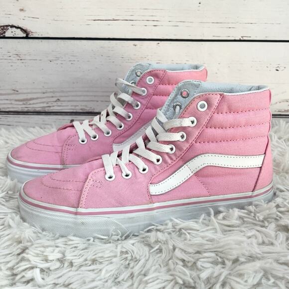 Vans Sk8 Hi Pink and White Canvas High-Top Sneakers Unisex 8 Men - 9.5 Women