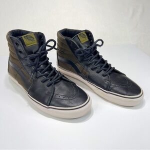 Vans Sk8 Hi Top Shoe Mens 10 Black Leather Olive Green Canvas Great Shape!!
