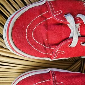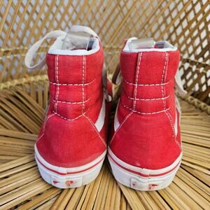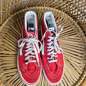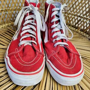 Vans Sk8-Hi Canvas Leather High Top Sneakers Men's 8.5 Red White