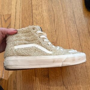 Keywords: Vans sherpa sneakers, Vans Sk8-Hi fleece, cozy cream high tops, winter streetwear shoes, shearling sneakers, women’s skate shoes, neutral fuzzy Vans