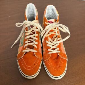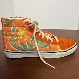 Vans Sk8-Hi Orange Floral High Tops Men’s 6.5 Women’s 8 Canvas Skate Shoes suede