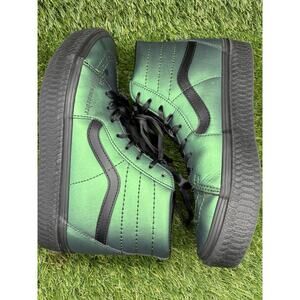 The Vans Sk8-Hi Platform RB Harry Potter Morsmordre Sneaker is a unisex athletic shoe featuring a lace-up closure and a green color scheme inspired by the Harry Potter character, Morsmordre. Released in 2019, this Vans model is part of the Platform product line and is designed for skateboarding activities. Made in Vietnam, this sneaker combines the iconic Vans style with Harry Potter theme, making it a unique and sought-after addition to any fan's collection. Great Condition