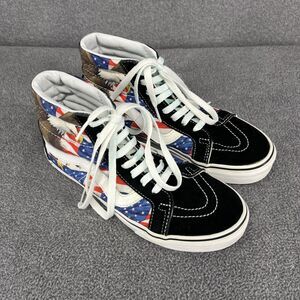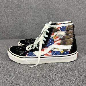 Vans Sk8-Hi Shoes Mens Size 6.5 Womens 8 Black American Flag Bald Eagle Patriotic High Top