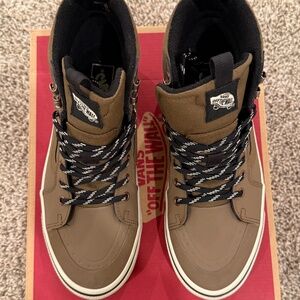 Worn only once by my son but he needed a smaller size. Men’s Size 10, excellent condition with very minimal signs of any use at all. A super comfy and stylish pair of Fall/Winter Vans in a great Sepia Brown colorway