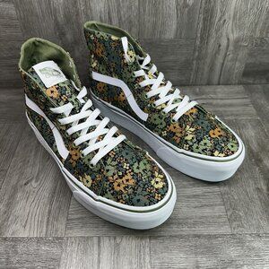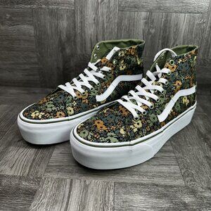 Vans Sk8-Hi Women's size 10 Floral Hightop Olive Green Multicolored Shoes