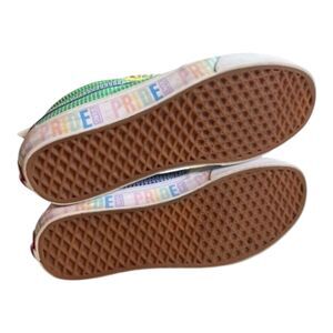 "PRIDE" and "VANS" printed repeatedly in multi-color along the midsole