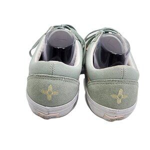 Drawing inspiration from his vibrant nature, the Dan Lu-endorsed Old Skool Pro is designed with fresh harbor grey (looks green to me) canvas and suede uppers, complimented by a pearl pink-toned Sidestripe. With Daniel's original artwork and a self-portrait on the footbeds, this personalized silhouette features an embroidered handwritten signature by Lutheran on the tongue and an ode to his home state of New Mexico with the Zia symbol stitched onto the heel. This modern-day Pro Classic is engineered with Vans' trustworthy UltraCush HD sockliners, Vans' original waffle outsole gum rubber compound, and Duracap-reinforced uppers to support and endure Daniel's unhinged skate style.