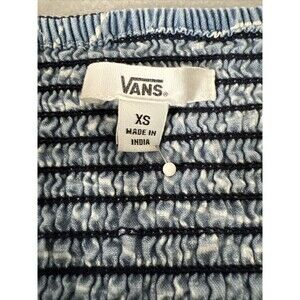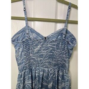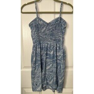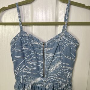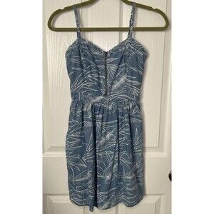 Vans Skater Sundress XS Denim Blue Chambray Tropical Leaf Print Zip Front