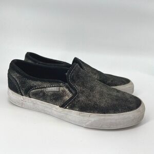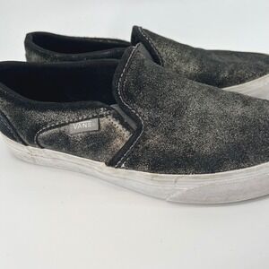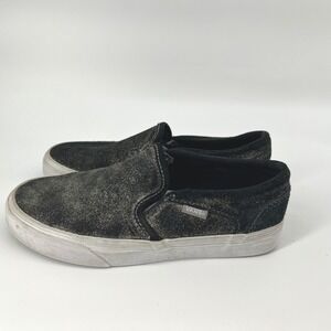 Vans Slip On Sneakers Black and Glitter Suede Womens Shoes Size 6