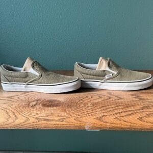 Van's Slip Ons Neutral Dusty Olive/Taupe Tone Women's Size 7 Men's Size 5.5