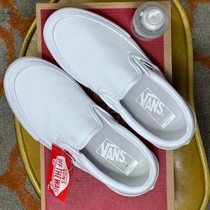 White vans, never worn. New in box 4.5 size. I would say this fits about a 6 in women’s. Comes with water and stain shield spray.