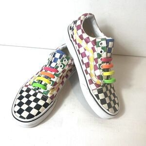 Vans Sneakers Skate Shoes Women's Size 6 Multicolor Glitter Plaid Canvas Mens Size 4.5 Slip On