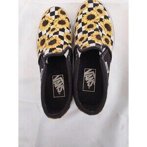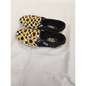 Vans Sneakers Womens Asher Sunflower Shoes Yellow Canvas Checkered Slip On 5.5