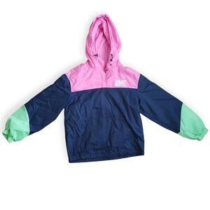 Vans Sport Stripe Anorak Jacket. The Sport Stripe Anorak is an anorak jacket with a half-button neckline, contrast colorblocking details, and elastic bungee drawcords at hood. It also includes dropped shoulders, a kangaroo pocket, screen Vans logo prints at the chest and back, and a relaxed fit. Self: 100% nylon. Lining: 100% polyester. Machine wash.