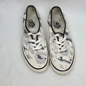 Vans Style 44 gray and white camo sneaker. Lace up. Off the wall. Great condition, minor marks/scuffs. Size 7 women, 5.5 men, unisex.