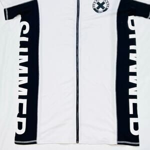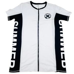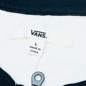 Introducing the Vans Summer Bummer Dress Shirt by Alexandra Cassaniti in black and white womens Large size. Full front zipper with bold graphic text detail on side "SUMMER BUMMER". Part of a limited collaboration blending surf style with streetwear edge. New with tags.