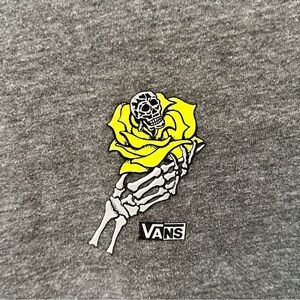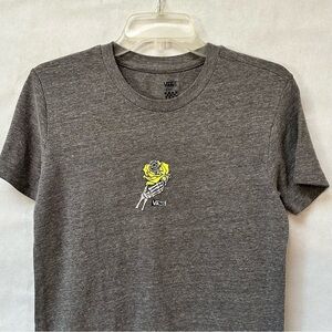 Vans Surf Skate Gray T-Shirt with Skeleton and Yellow Rose Design