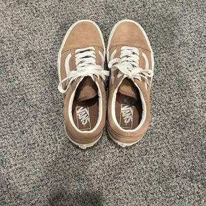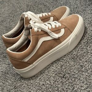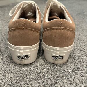 Vans Tan and White Low-Top Platform Sneakers