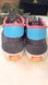 Stylish Vans high-top sneakers. Gray suede with pink accents. Comfortable and trendy design.