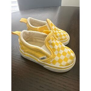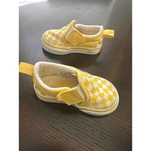 Vans Toddler Slip-On Checkerboard Sneakers Yellow & White Size 3 Canvas & Rubber
