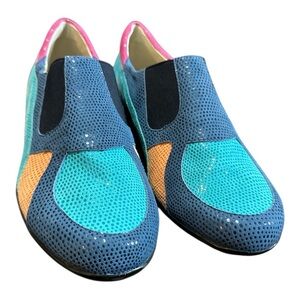 Vans Vibrant slip-on shoe with unique graphic designs. Features a mix of red, purple, and green colors. Classic American tattoo art. Size 8.5 women’s these have been worn a handful of times. There is some color blending onto the sole. Please see all pictures as it’s in more than one spot.
