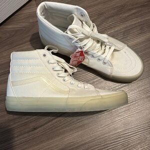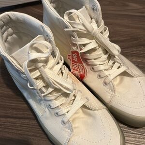 Small scuff mark on side of shoe that can probably be removed with stain remover or oxi! Size 8
