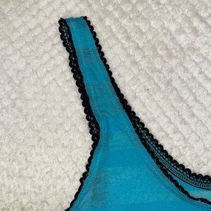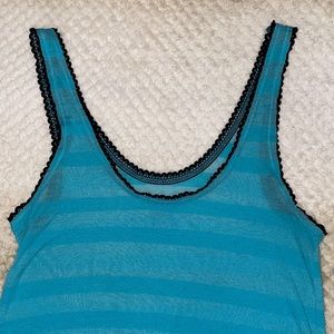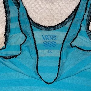 Vans turquoise striped tank top with black details on the neckline and arms. Size small.
