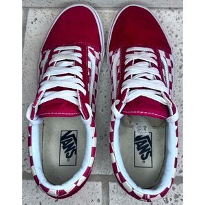 Vans Unisex Old Skool (Primary Check) Red White Checkered Skate Shoe Low Top Sneakers Men’s Sz 9.5/ Women’s Sz 11/Excellent condition. The Primary Check Old Skool, the Vans classic skate shoe and first to bare the iconic sidestripe, is a low top lace-up featuring sturdy canvas and suede uppers with the iconic Vans checkerboard print. The Old Skool also includes re-enforced toecaps to withstand repeated wear, padded collars for support and flexibility, and signature rubber waffle outsoles.