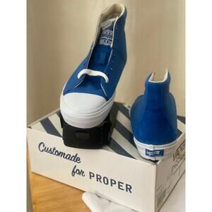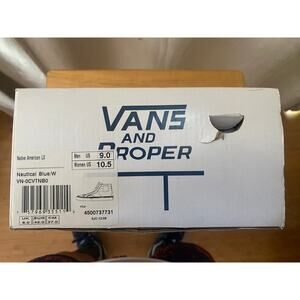 Vans Vault partnered with Long Beach, California sneaker boutique Proper to rekindle their 2008 Native American LX designs. The Native American XL is only available in a Nautical blue rendition. This pair boasts a seamless motif that includes white stripe-less midsoles with embellished checkerboard heel caps. Evidence of the collaboration is shown with a Proper tag on the right foot and an eye-catching maritime emblem conveying “Long Beach Native” on the tongue. This pair is dead stock and never worn. They come complete with dust bag and an set of nautical blue shoe laces still set in its original packaging. Please inquire for more deatils and/or photos. Thank you for your interest.