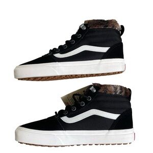 Vans Ward Hi MTE High Top Suede Sneakers Leopard Fur Women’s Size 7.5 Black