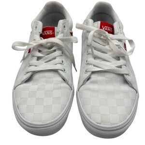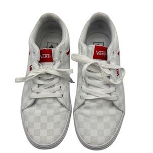 Vans Ward Low Top Sneakers White Checkerboard Red Logo Lace Up Skate Shoes W-9.5