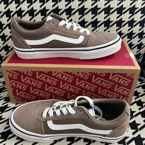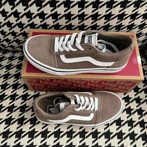 This listing is for a pair of NWT's Vans Ward Girls Sneakers in canvas walnut, in size 2. The first design to bare the iconic side stripe, these Vans Ward sneakers give them classic skater style.